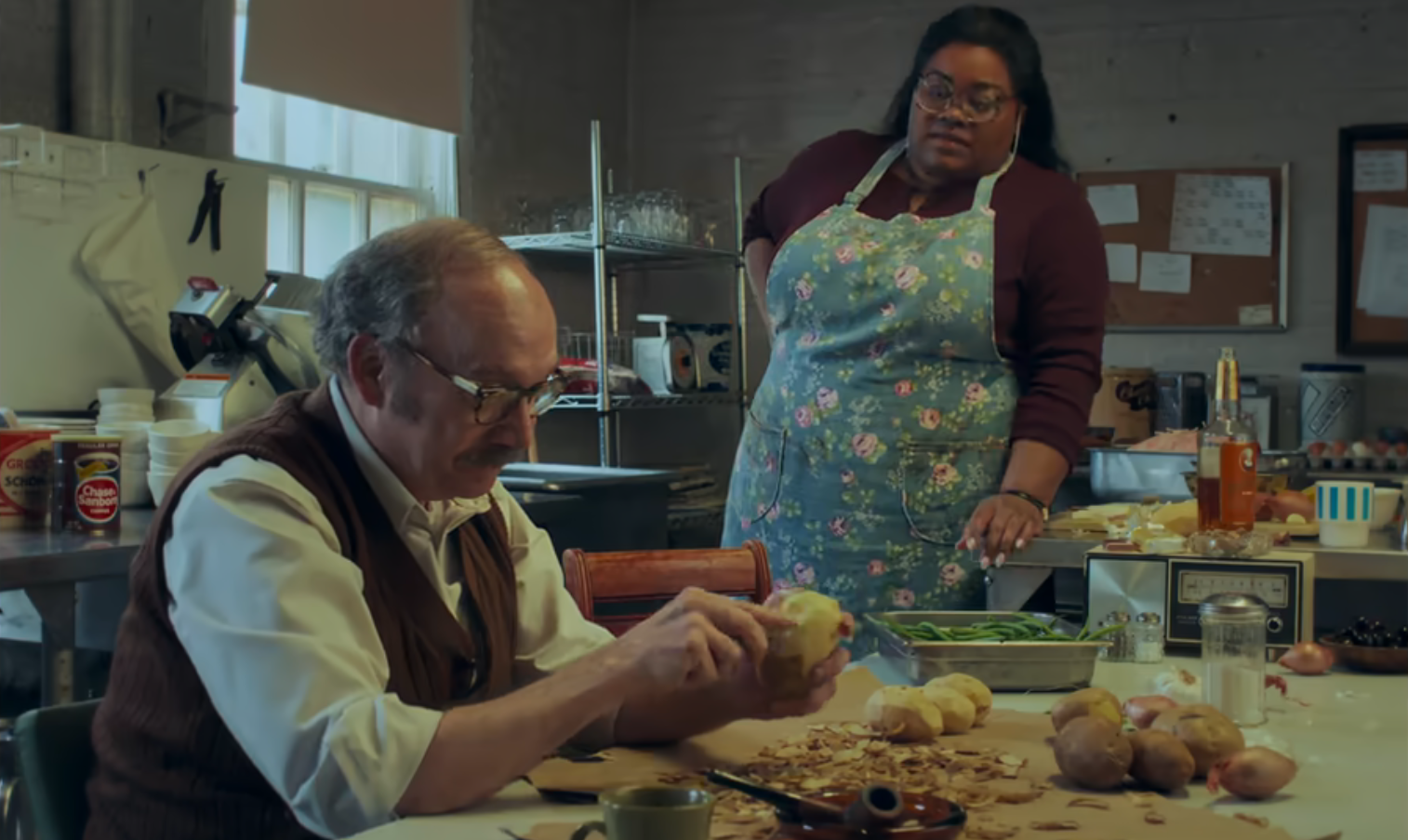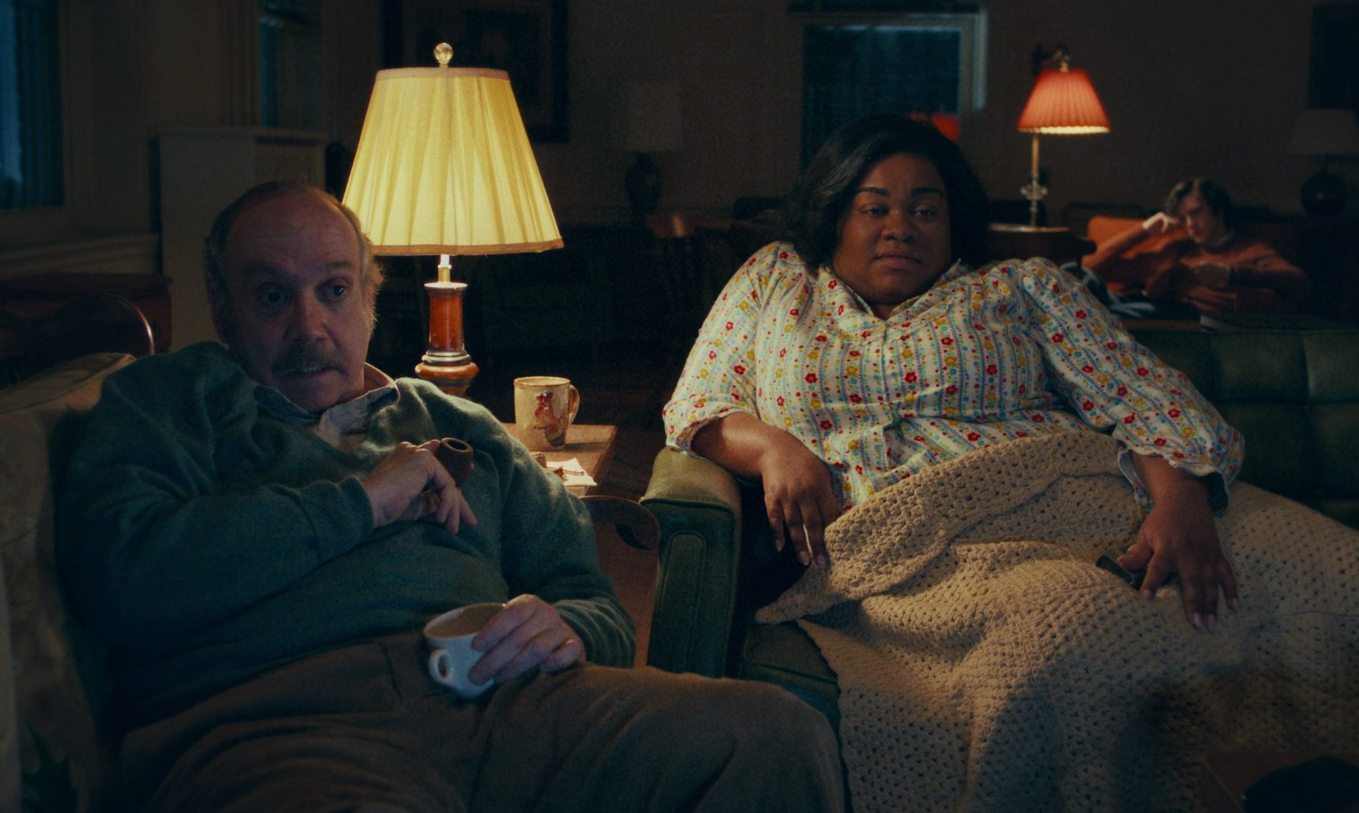 Mary lets Paul know she’s rooting for him, gifts him a blank book to write in. Unlike him, she is content with her place in the world, and has motivated herself with the ambition of saving for her niece’s college education. Angus learns he won’t be expelled, thanks entirely to Paul’s intervention. The shared holidays have transmogrified Paul into a better person.