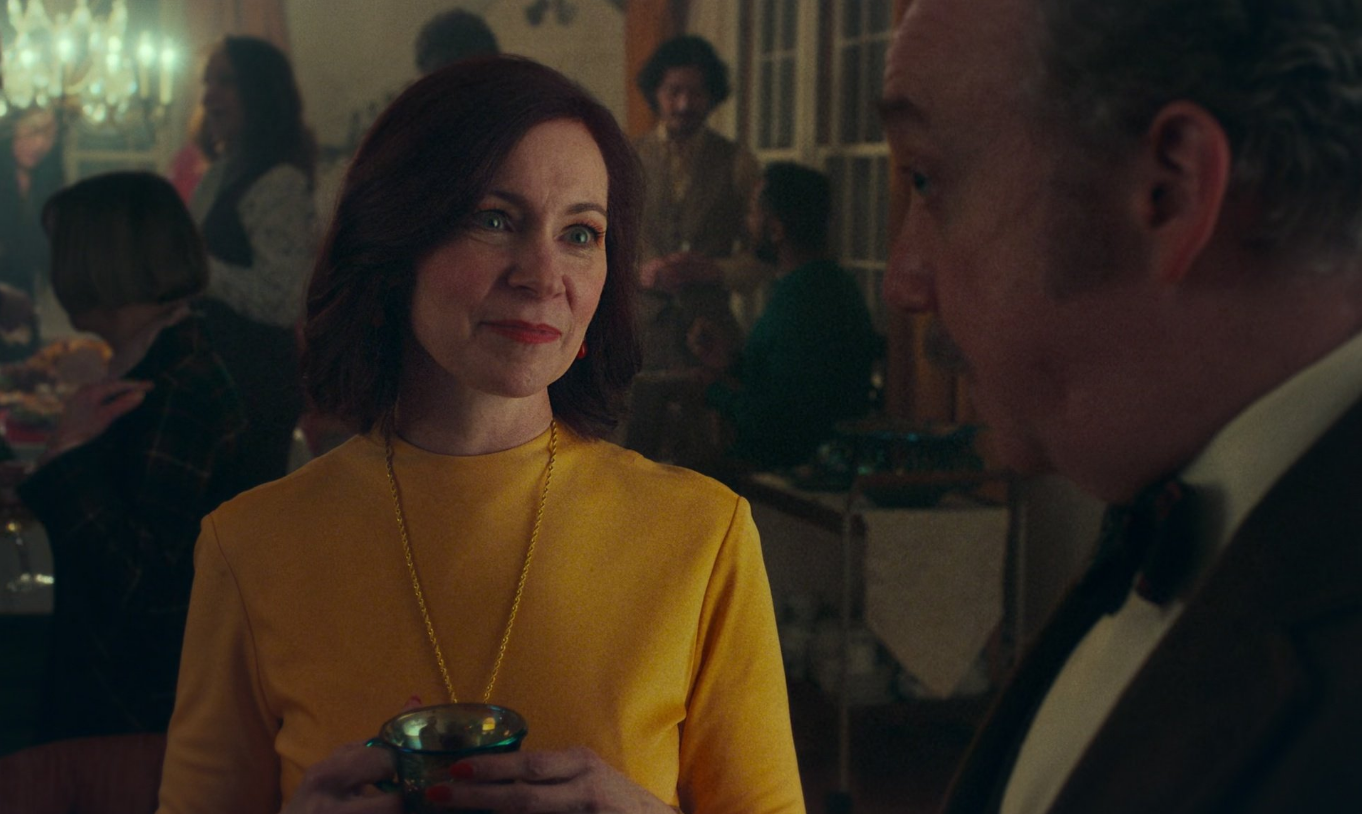 Miss Lydia Crane, assistant to headmaster Dr. Woodrup, summons Paul. He turns down her offer of Christmas cookies, immediately establishing him as someone incapable of processing warmth even when it’s offered on a plate.