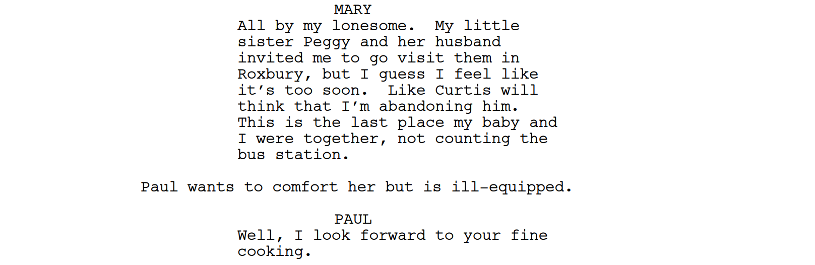 On Christmas Eve, Paul helps Mary prepare dinner. We learn all three Holdovers are invited to a party at Miss Crane’s house, and Paul tries to prevent Angus from going.
